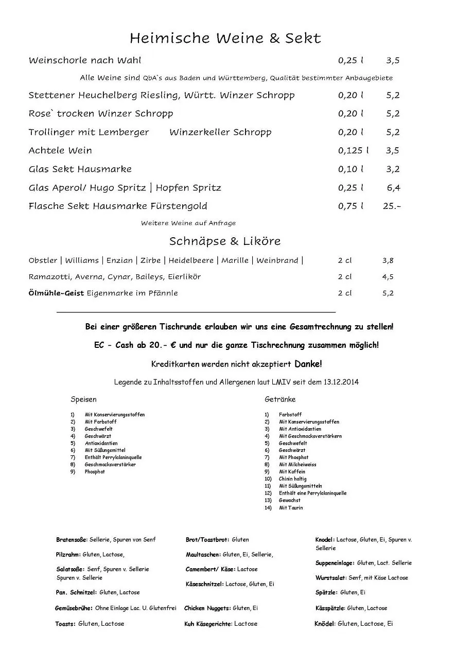 Umfangreiches Speisenangebot im Zur Ölmühle in Schömberg